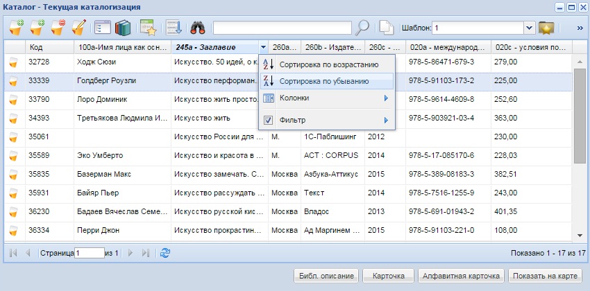 - Представление каталожных записей в табличной форме и в развернутом виде в окне просмотра/редактирования. Листание каталожных записей в окне просмотра/редактирования.